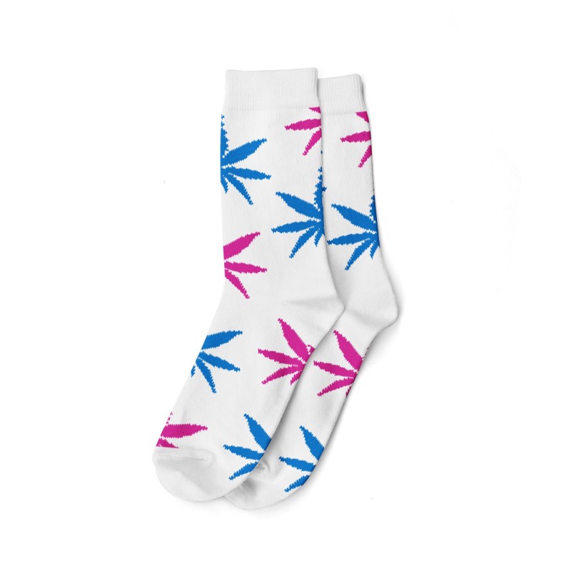 LANGE SOCKEN - WEISS/420/GRÜN LEAVES Size 40-45 x12 Paaren