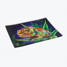 V-SYNDICATE GLASS ROLLING TRAY - TRIBAL LION 26x16 cm