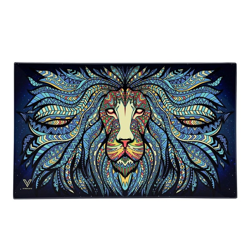 V-SYNDICATE GLASS ROLLING TRAY - HAMSA RED 16x13 cm
